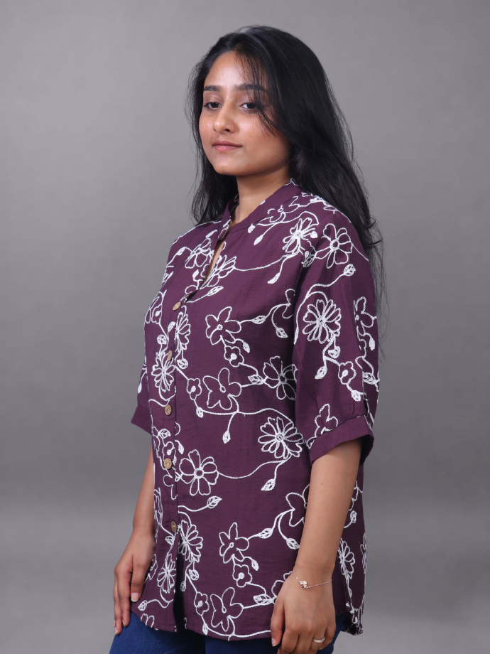 Purple Bloom Mandarin Collar Shirt
