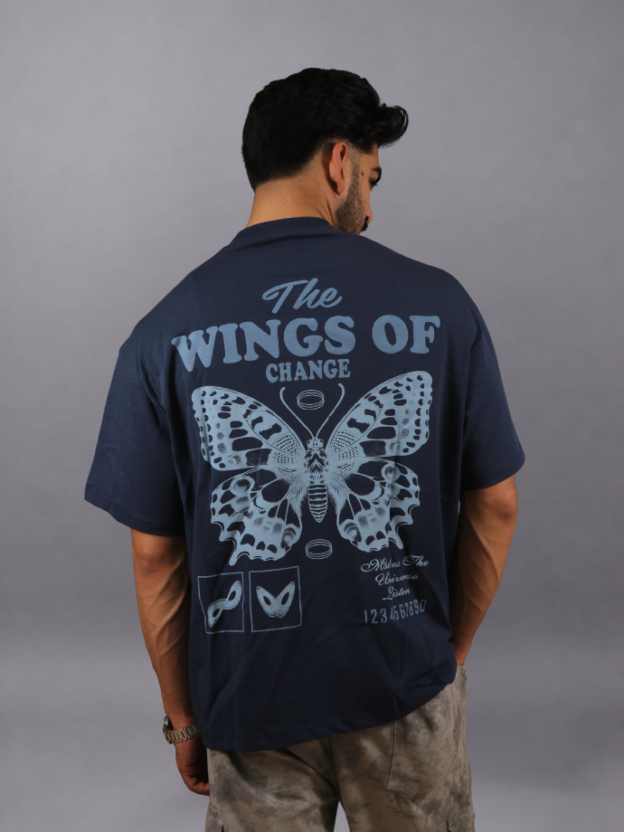 Embrace an effortless urban aesthetic with the “Wings of Change” oversized tee. This signature piece features a minimalist “The Wings of Change” chest logo paired with an expansive, high-detail butterfly illustration across the back, complete with “Makes The Universe Listen” typography.